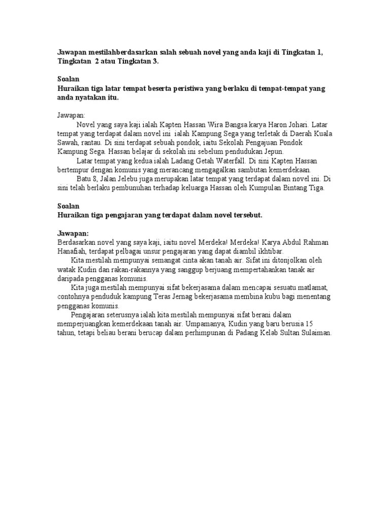 Contoh Karangan Novel Tingkatan 3 - Contoh Soalan Novel Tingkatan 4 Di Sebalik Dinara Thoiso